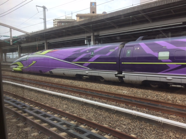 出張の際にたまたま向かいのホームに停車していたエバンゲリオンがラップされた500系を見つけパチリ。