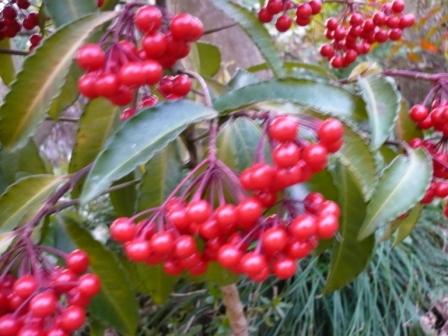 我が家の庭で春の息吹を見つけました。左の写真の黄色い花は蝋梅です。真ん中は梅のつぼみ。右端は、綺麗な赤い実を一杯つけた名称不明の小さな木。植えた覚えがないのに、庭のそこかしこで赤い実をつけています。きっと鳥が運んできた種から育ったのでしょう。蝋梅の花は薫り高いせいか、すぐに小鳥に食べられてしまいました。