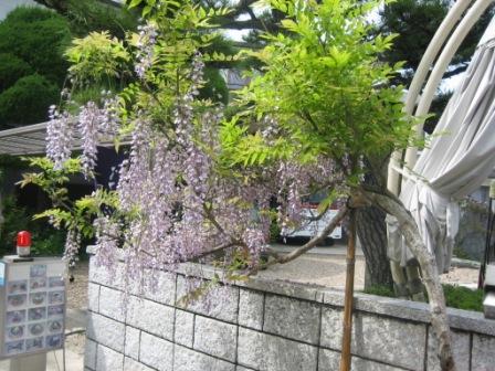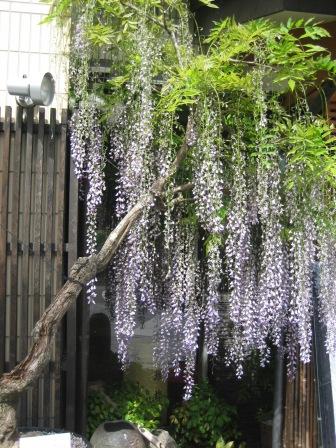 今年は藤花が当たり年とかで、京都宇治の平等院の藤を見に、実家(宇治)に帰りました。が、宇治川の堤から平等院内の藤棚を眺めることはできませんでした。数年前までは、川の堤から藤棚が見えたのですが・・・。ちなみに、鳳凰堂の阿弥陀様も従来は堤から見えました。お寺様も庶民に厳しくなったものです。しかたなく商店街の藤を撮影してきました。店のおばちゃんからは、”藤の花はもう終わりやで”とトドメの一言。