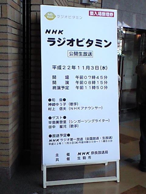放送後、ゆう子お姉さんと握手しようと思っていたのですが、昼食の”スパゲッティがのびる”との自宅からメールで泣く泣く案内用看板だけ写真に撮り帰路につきました。