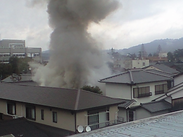 朝、クルマでの出勤途中、消防車が横を通過。見ると、事務所の方向から黒煙が。事務所に近づくにつれ、