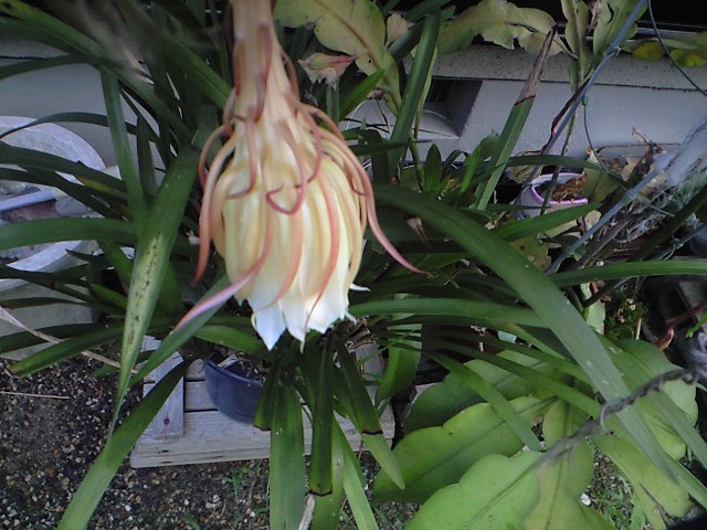 8/14 帰省先の実家で、月下美人が開花。といっても、外に置いてあったので開花しているところは見ていません。