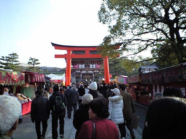 写真は、1月2日に伏見稲荷大社にお参りしたときのものです。毎年、伏見稲荷へは初詣に行っているのですが、今年は例年より人手が少ないように感じました。不景気のせいですかね。ここは商売の神様ですから不景気のときほど混むはずなのですが、・・・。
