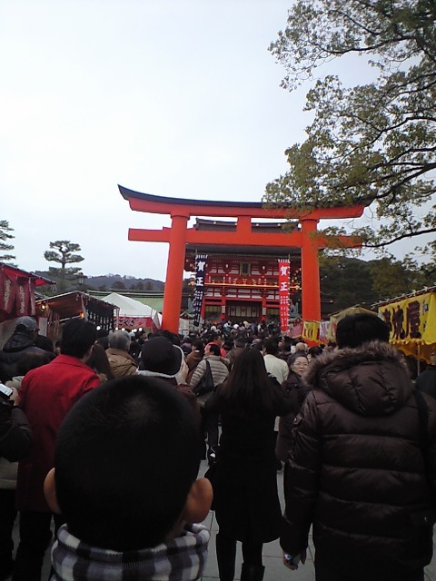 今年も伏見稲荷大社に初詣に行きました。 曇り空で気温が少し低かったせいか、人手は昨年に比べて少ないように感じました。 今年は景気が回復することを祈ります。