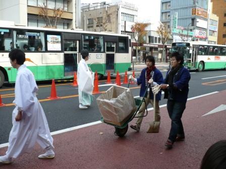 写真右は、馬列の後について排泄物処理班です。何かとても現実的で、思わず撮影してしまいました。