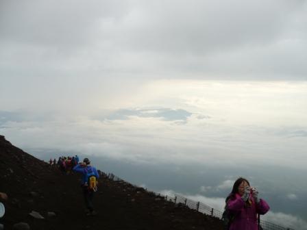 中学時代からの友人と富士山に登ってきました。五合目に夕方到着。七合目まで登り、そこの山小屋で2時間ほど仮眠。そして、夜10時から山頂目指して登り始める。そして午前4時頃、山頂到着。残念ながら、ガスでご来光は見られず。しかし下山途中からガスがはれ、きれいな雲海が見えました。