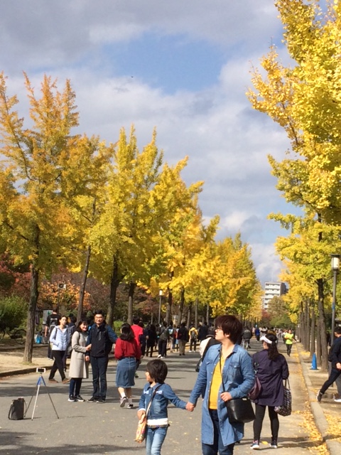 近くのホテルで同窓会があり、少し時間があったので久しぶりに大阪城公園へ。銀杏並木。大阪マラソンが近いせいがランニングしている人を多く見かけました。第1回大阪マラソンに出場した当時を思い出しました。